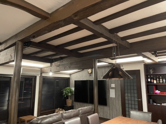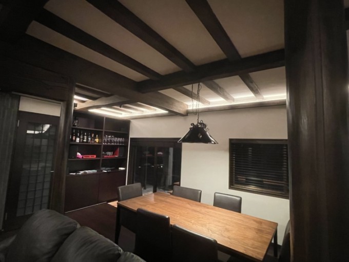 間接照明も手作りです。